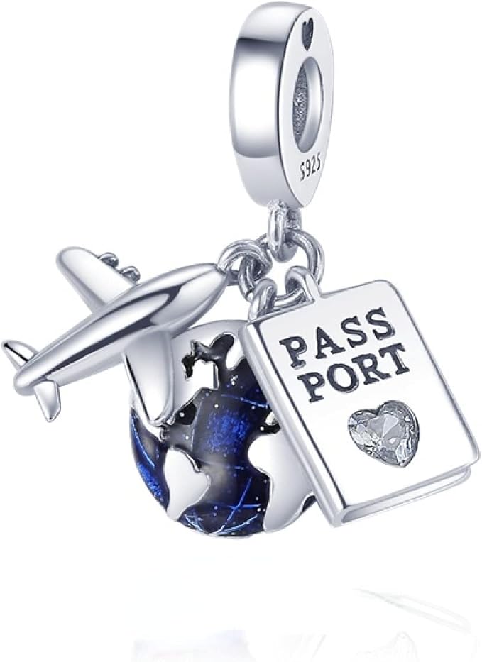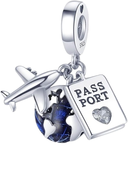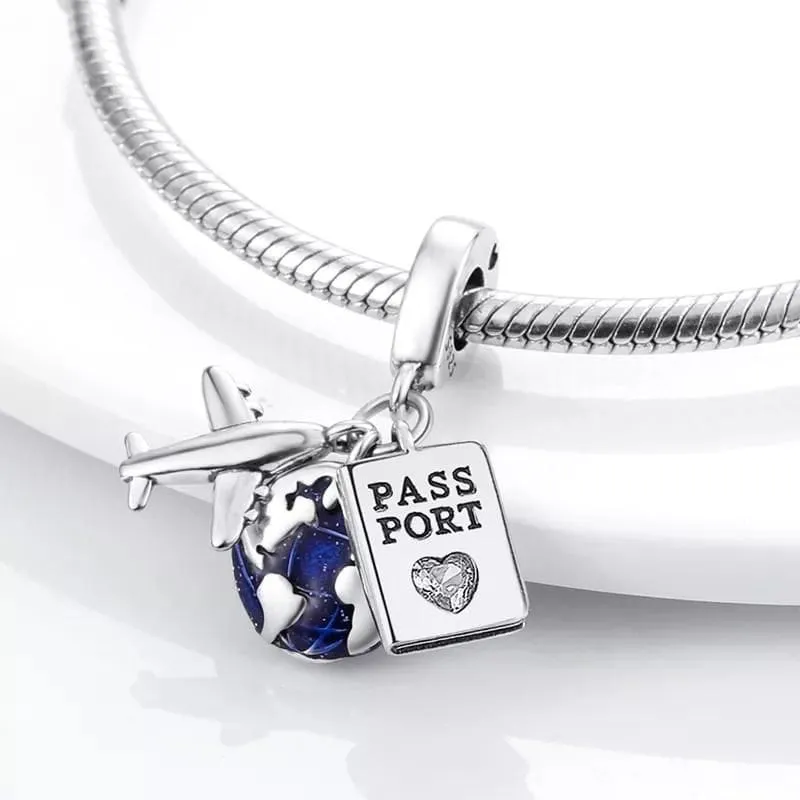 چارم نقره پاندورا مدل هواپیما و گذرنامه
