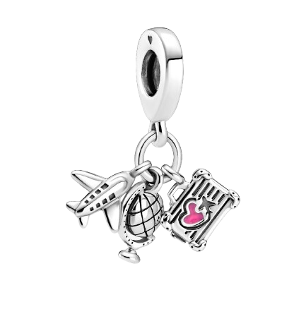 چارم نقره پاندورا مدل آویز هواپیما، کره و چمدان