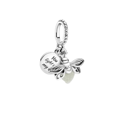 این چارم درخشان از نقره استرلینگ ساخته شده و الهامگرفته از کرمهای شبتاب جادویی در طبیعت است. درون بدن آویز، رزین شبتاب کار شده که در تاریکی میدرخشد و حس آرامش و شگفتی شبهای تابستانی را منتقل میکند. بالها با جزئیات دقیق و پرداخت براق ساخته شدهاند و روی پشت آن عبارت «You light up my life» بهمعنی «تو زندگی مرا روشن میکنی» حک شده است — پیامی پر از عشق و قدردانی.با چارم کرم شبتاب پاندورا، درخشش عشق و امید را همیشه همراه خود داشته باشید — جواهری که حتی در تاریکی نیز نور میبخشد.