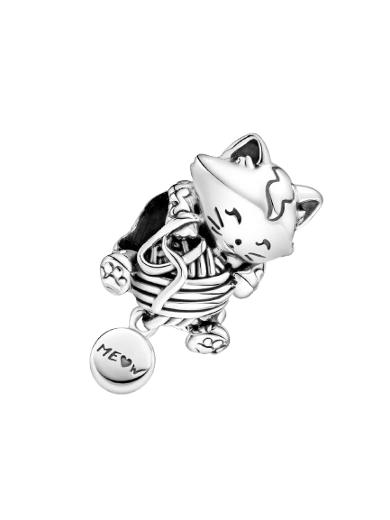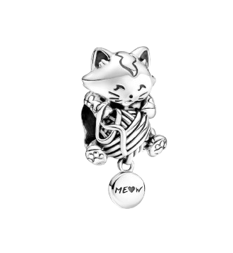 چارم نقره پاندورا مدل بچهگربه و گلوله کاموا
