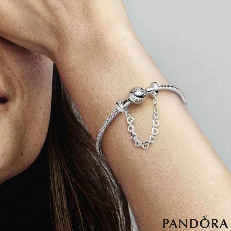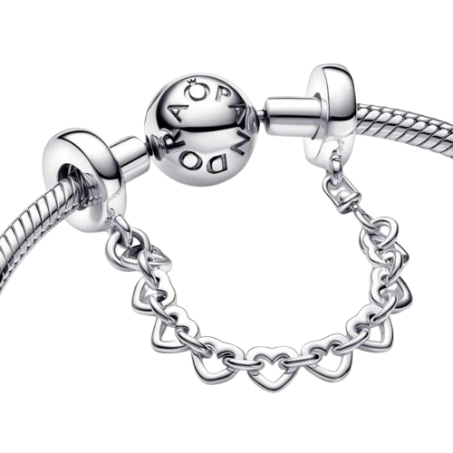 زنجیر ایمنی با طراحی قلبهای پیوسته که نمادی از عشق، پیوند و امنیت است. این مدل علاوه بر محافظت از دستبند، جلوهای رمانتیک و نمادین به استایل شما میبخشد.اگر به دنبال ترکیب امنیت و نماد عشق روی دستبند خود هستید، زنجیر ایمنی قلبهای بههمپیوسته پاندورا بهترین انتخاب است.