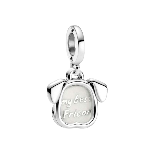 چارمی بامزه و احساسی برای دوستداران سگ، با طراحی آویزی از یک سگ در قاب قلبی. ساختهشده از نقره استرلینگ با جزئیات مینای مشکی روی چشمها و بینی.اگر سگت بهترین دوستت است، چارم آویز سگ من پاندورا انتخابی عالی برای ثبت این عشق بیپایان است.