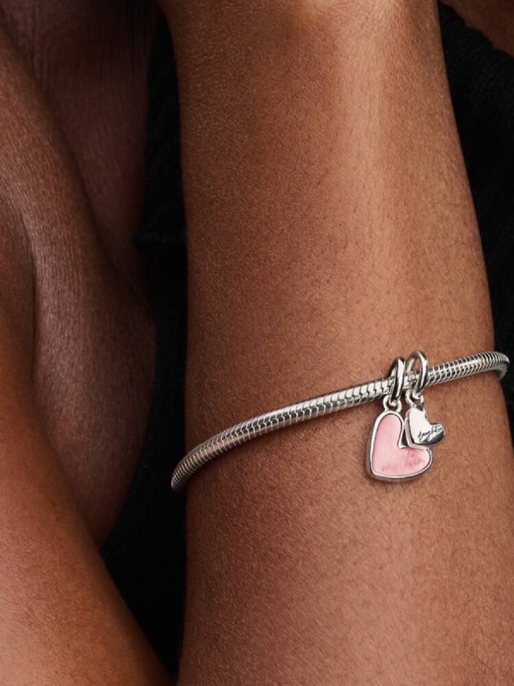 چارم نقره پاندورا مدل قلب مادر و دختر
