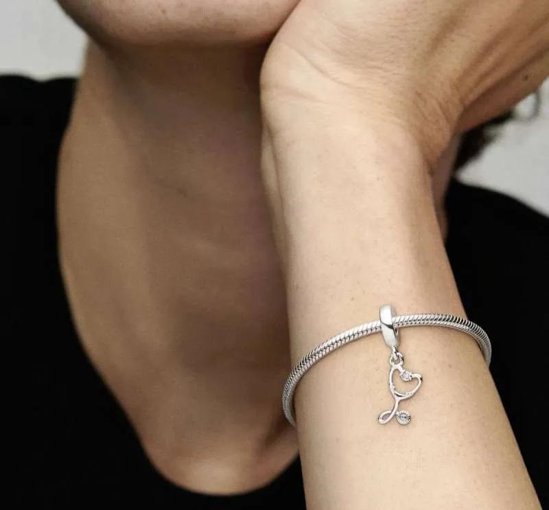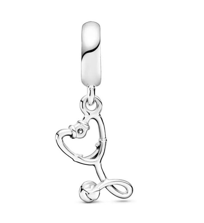 چارم نقره پاندورا مدل آویز قلب و گوشی پزشکی